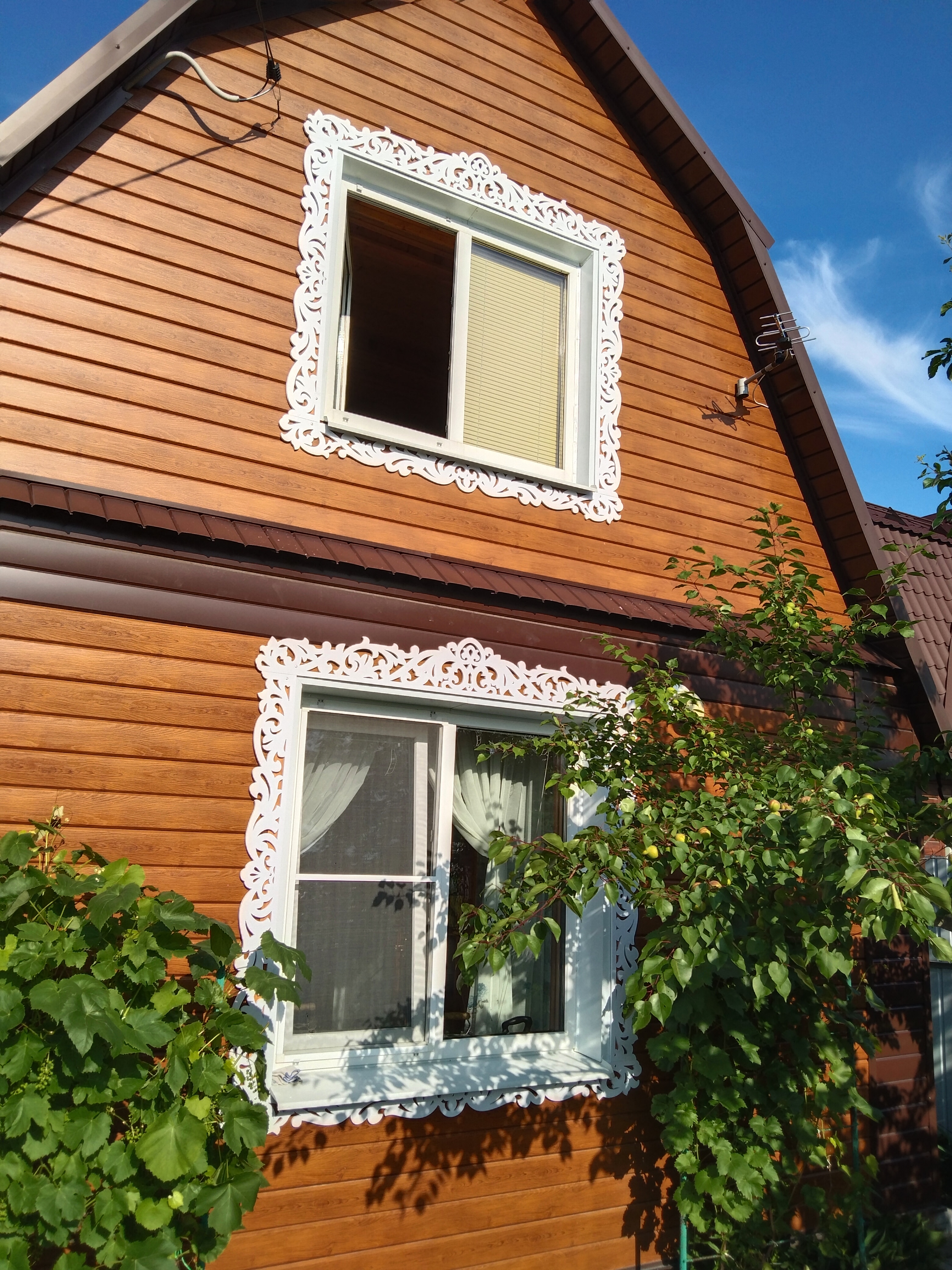 Пластиковые наличники для окон служат декором для дома и возвращают нас к старым русским традициям. Выполнены из пластика ПВХ. Этот материал обладает устойчивостью к атмосферным осадкам и другим условиям окружающей среды. Закрывая щели - препятствует их продуванию, обладая хорошей шумоизоляцией и теплоизоляцией. Ими можно украсить не только окна, но и входы в гараж, баню, дом, заборы, входные группы. Крепятся обычными саморезами, подрезаются канцелярским ножом или ножовкой по металлу. Есть различная толщина наличников, подбирается исходя из материала фасада. К примеру слишком тонкий 3мм на бревенчатом доме будет изгибаться. Есть разные узоры, нейтральные, со славянской символикой, на Руси считавшиеся оберегами на окнах. Вам нужно сделать замеры и позвонить нам!